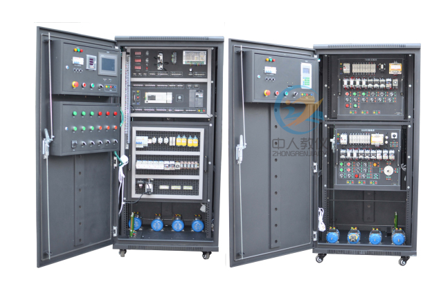 1.本裝置采用標(biāo)準(zhǔn)配電柜為主體柜,充分利用該柜雙面空間位置,其中裝有可方便拆卸的電源控制、交直流電源、測量儀表、低壓電氣器件,另一面裝有PLC模擬量模塊、變頻器、直流調(diào)速模塊、機(jī)床智能考核,該配電柜占地面積小,外形美觀;2.電氣控制線路元器件都裝在電氣柜內(nèi)部,配有布線槽、接線端子;通過端子學(xué)生可自行接線、布線,構(gòu)建控制系統(tǒng),實(shí)訓(xùn)特點(diǎn)明顯,同時(shí)具有一定的擴(kuò)展性;