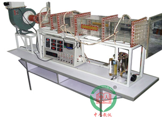 多翼式低噪音風(fēng)機(jī),自動(dòng)調(diào)節(jié)風(fēng)門,組合式有機(jī)玻璃風(fēng)洞,有機(jī)玻璃實(shí)驗(yàn)管段,紫銅平板試件,固體調(diào)壓模塊配電位器調(diào)節(jié)加熱功率,數(shù)顯電流表、電壓表顯示加熱電流電壓,風(fēng)流量由畢托管配差壓傳感器測(cè)量,溫度由PT100熱電阻測(cè)量,8路萬(wàn)能信號(hào)輸入巡檢儀顯示溫度、阻力、流量,不銹鋼支架。