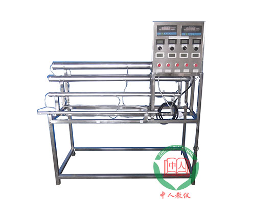 不同長(zhǎng)度和直徑的電鍍紫銅管四根,管內(nèi)設(shè)置加熱器,固體調(diào)壓模塊無(wú)機(jī)調(diào)節(jié)加熱,測(cè)溫傳感器,電功率測(cè)試數(shù)顯儀表,萬(wàn)能信號(hào)輸入巡檢儀顯示溫度,各管配有溫度控制儀表,不銹鋼臺(tái)架及控制屏等。