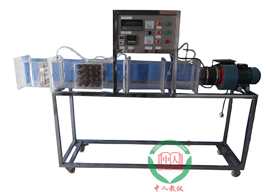 多翼式低噪音風(fēng)機(jī),自動(dòng)調(diào)節(jié)風(fēng)門,組合式有機(jī)玻璃風(fēng)洞,翅片加熱管,加熱由固體調(diào)壓模塊配電位器調(diào)節(jié)加熱功率,數(shù)顯電流表、電壓表,翅片管簇順排和叉排組合,溫度傳感器,畢托管配差壓傳感器測(cè)量風(fēng)量,16路萬能信號(hào)輸入巡檢儀顯示溫度、阻力、流量,不銹鋼支架。