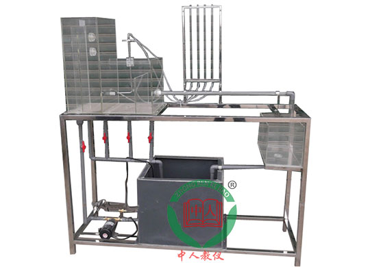 水泵、蓄水箱、畢托管、測壓計、管嘴射流裝置、恒壓水箱、計量水箱、刻度標尺、秒表、自循環(huán)系統(tǒng)、不銹鋼框架。