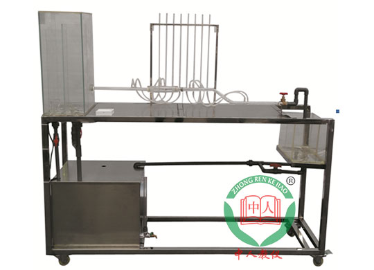 蓄水箱、水泵、有機(jī)玻璃實(shí)驗(yàn)水箱、有機(jī)玻璃計(jì)量水箱、刻度標(biāo)尺、秒表、玻璃溫度計(jì)、測壓管、閥門、不銹鋼框架。