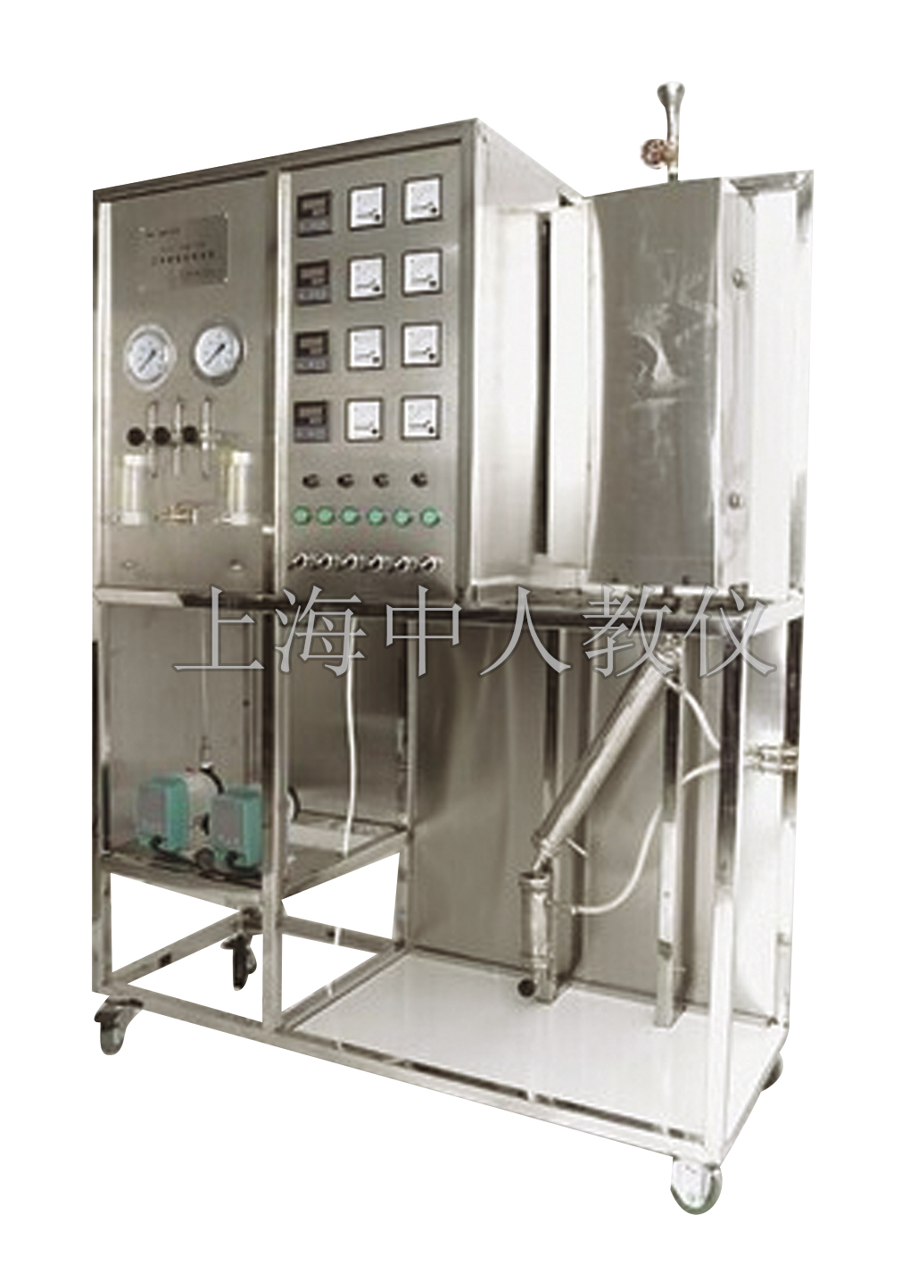 16、304不銹鋼儀表柜:各項(xiàng)操作及溫度、流量、壓力的顯示、調(diào)節(jié)、控制全在控制柜面板進(jìn)行。
