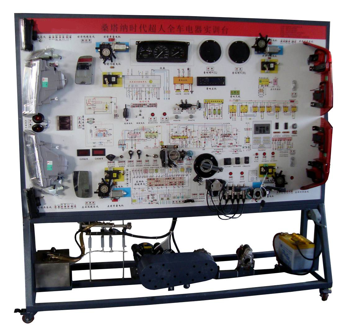 燈光系統(tǒng)、儀表系統(tǒng)、點火與噴射系統(tǒng)、起動系統(tǒng)、充電系統(tǒng)、發(fā)動機電控系統(tǒng)、、防盜電腦及點火開關(guān)、喇叭系統(tǒng)、電動車窗系統(tǒng)、電控門鎖及后視鏡系統(tǒng)、雨刮系統(tǒng)、音響系統(tǒng)、故障設(shè)置系統(tǒng)、移動臺架等。