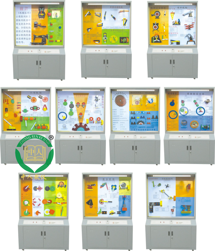 共分10柜,每柜能單獨(dú)通過(guò)柜上面板操控、講解、演示機(jī)械傳動(dòng)原理。語(yǔ)言同時(shí)解說(shuō),與通過(guò)主控臺(tái)控制演示方法相比,具有使用簡(jiǎn)單、演示直觀、維護(hù)方便的特點(diǎn)。柜身采用高檔三聚氰胺雙面飾面板制作,整體豪華、大氣、亮麗。