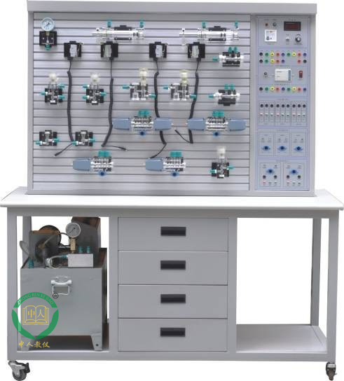 1、液壓PLC控制實驗臺主要由實訓(xùn)桌、實訓(xùn)臺、液壓元件和電器控制器件、可編程控制器(PLC)等組件組成。
