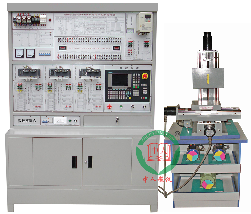 型數(shù)控銑床綜合智能考核實(shí)驗(yàn)臺(tái)由數(shù)控控制臺(tái)和三坐標(biāo)銑床部件組成實(shí)訓(xùn)考核教學(xué)設(shè)備。數(shù)控銑床的X、Y、Z軸由交流伺服電機(jī)控制,主軸由變頻器控制實(shí)現(xiàn)無(wú)級(jí)調(diào)速,X、Y、Z軸拖板采用滾珠絲桿高精度傳動(dòng),學(xué)生可以學(xué)習(xí)到伺服電機(jī)工作原理、變頻器控制及數(shù)控編程、加工的實(shí)驗(yàn)。