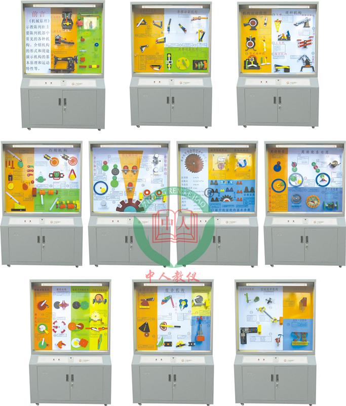 《機械原理》示教陳列柜是根據(jù)大、中專院校、技校、職業(yè)學(xué)校的機械原理教學(xué)大綱設(shè)計的電化教學(xué)設(shè)備。演示形象逼真,運行可靠,制作工藝美觀,使用本陳列柜可提高教學(xué)效果,節(jié)約學(xué)時是一套現(xiàn)代化機械課程教學(xué)應(yīng)用實驗室設(shè)備。