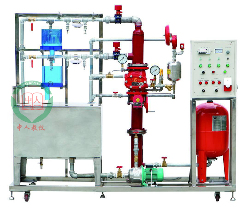 模型框架和水箱等主要部件全部使用不銹鋼器件,保證不生銹、不易老化,可以模擬兩層大樓噴淋滅火系統(tǒng);模型系統(tǒng)主要由噴淋水泵、氣壓罐、濕式報警閥、水力警鈴、延時器、壓力開關(guān)、水流指示器、封閉式噴頭、試驗閥、火災(zāi)探測器、火災(zāi)報警器等典型噴水滅火設(shè)備構(gòu)成,能生動模擬大樓內(nèi)水滅火系統(tǒng)的典型結(jié)構(gòu)。