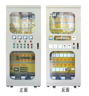 1、本裝置采用正反二面開門的離墻式威圖電氣控制柜,且正反面同時都可以操作,柜體中寬度能保證兩個學(xué)生同時合作接線實訓(xùn)的需要,其外形尺寸寬×厚×高分別為:800×600×2000 mm。柜體采用厚度為國標(biāo)1.5以上的優(yōu)質(zhì)鋼板,柜門采用厚度為國標(biāo)2.0以上的優(yōu)質(zhì)鋼板并安裝四塊大的玻璃,學(xué)生能通過玻璃看清柜內(nèi)各元器件及相應(yīng)的動作,金屬表面噴塑,柜體中間有二塊優(yōu)質(zhì)環(huán)氧樹脂絕緣板和相應(yīng)的支架系統(tǒng)隔離正反兩個柜體,安裝板上安裝智能建筑電氣控制線路各實訓(xùn)考核模塊。各元器件所有的接線端都連接至相應(yīng)的專用實訓(xùn)接線端子上,每個接線端上都套有用電腦打印接線端名稱及編號的套管,并且更換方便。被控制電機(jī)安裝于電氣控制柜內(nèi)。