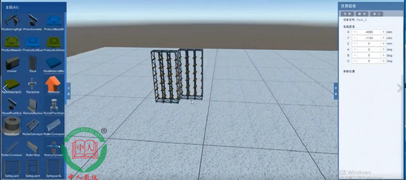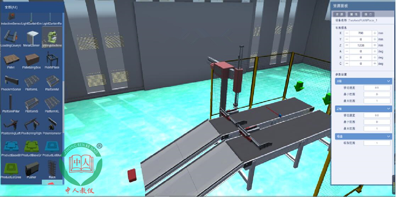 1.3、無需編程,面向三維圖形,通過鼠標拖拽三維元件,簡單快捷地部署工業(yè)應用場景并測試運行。