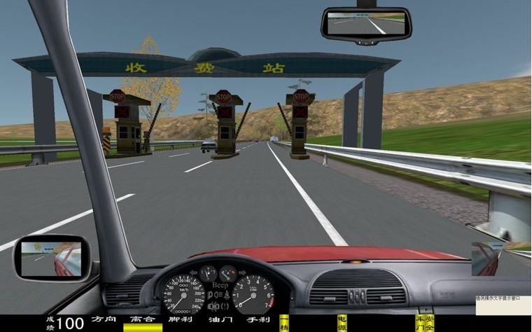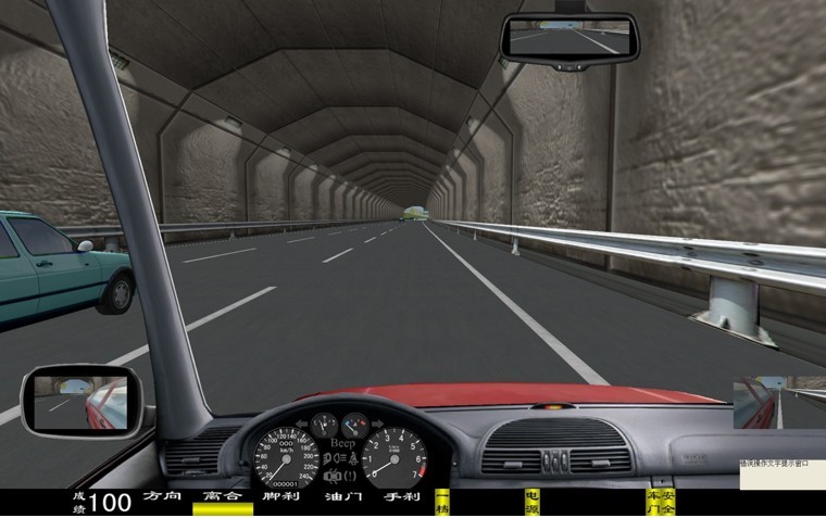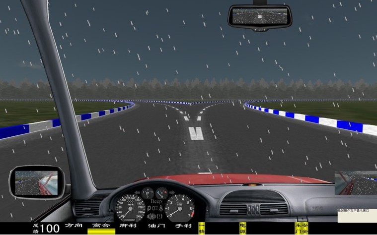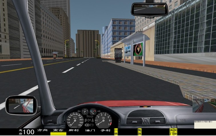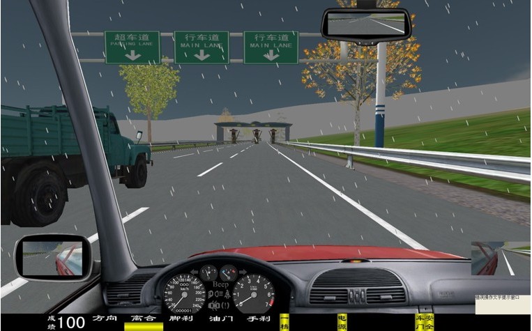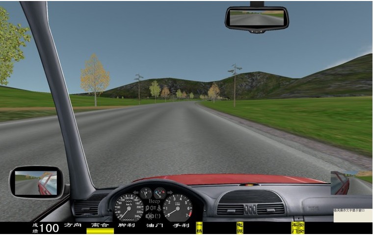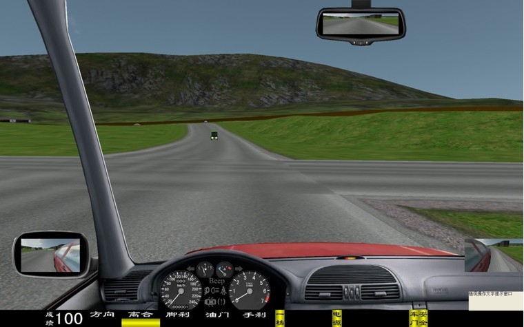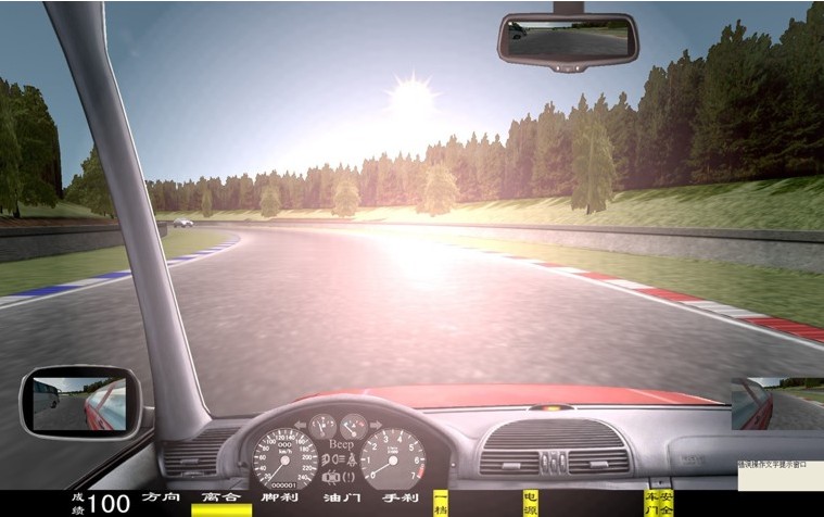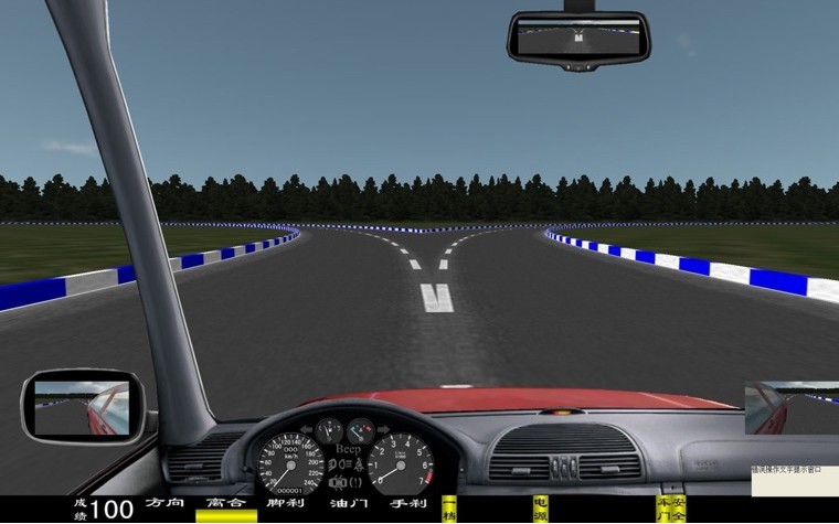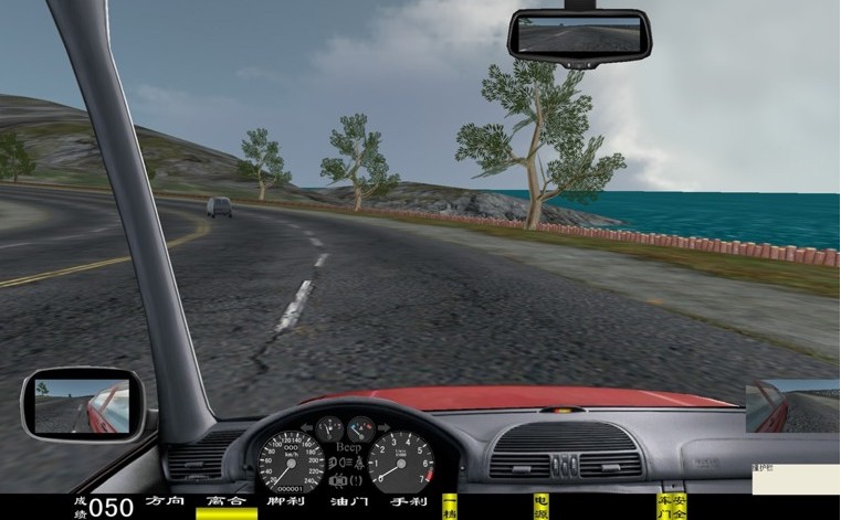 座艙包含了與真實(shí)車輛相同的操作部件,"五大"操縱機(jī)構(gòu):方向盤、離合器,腳剎,油門和手剎。真車變速器:倒檔、一檔、二檔、三檔、四檔、五檔和空擋(自動(dòng)檔只含前進(jìn)檔、倒車檔和駐車檔)。真車操作開關(guān):左轉(zhuǎn)向燈、右轉(zhuǎn)向燈、應(yīng)急燈、喇叭、點(diǎn)火開關(guān)、總電開關(guān)、安全帶、車門、雨刷、遠(yuǎn)光燈、近光燈、遠(yuǎn)近光交替。