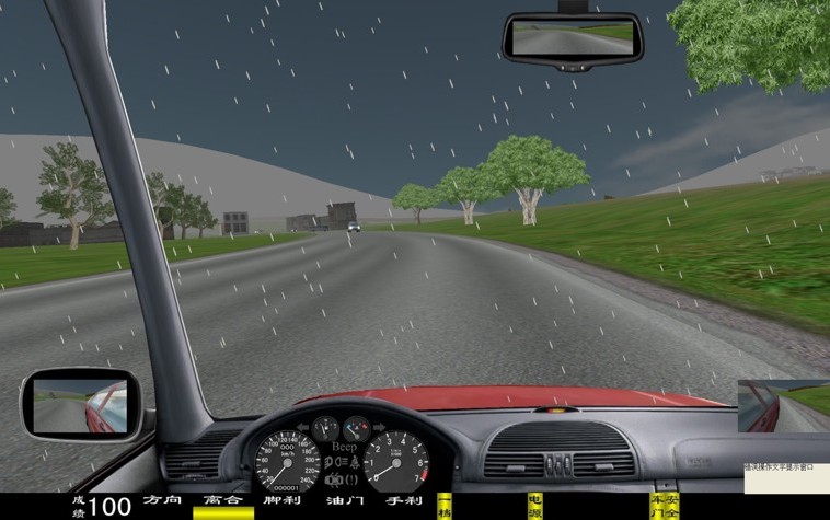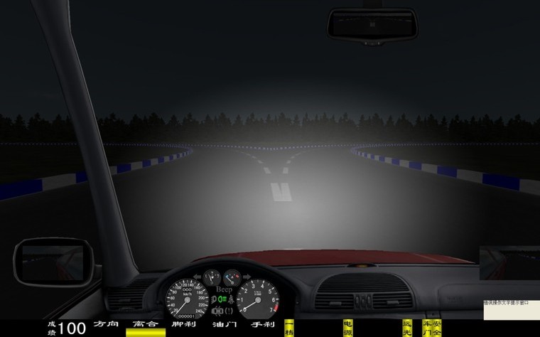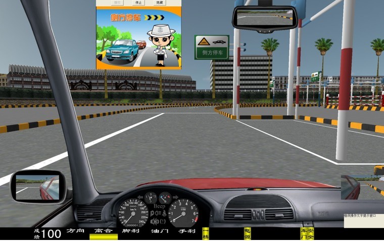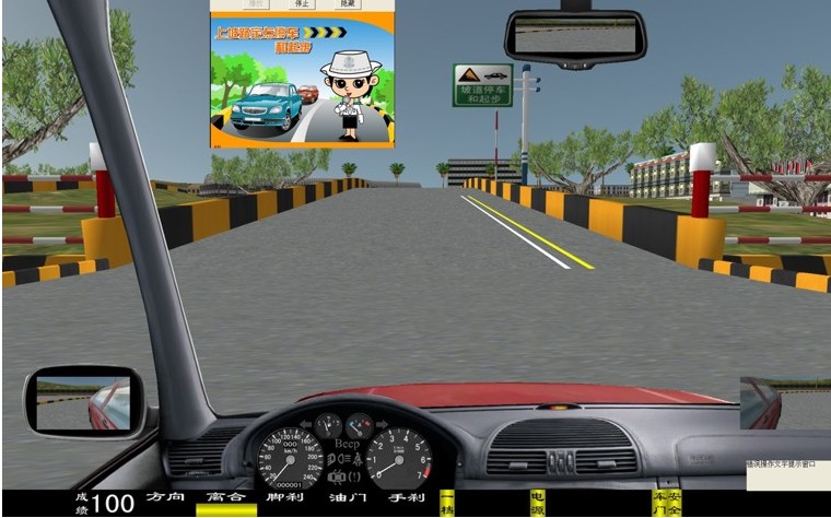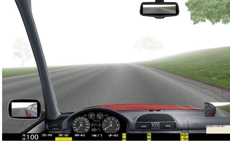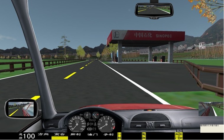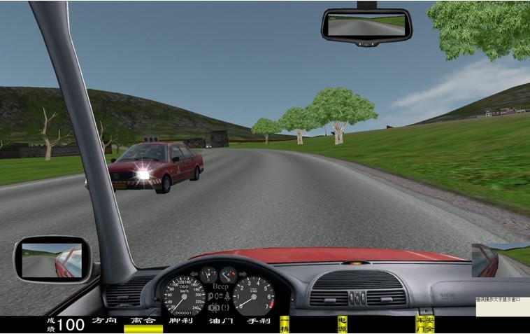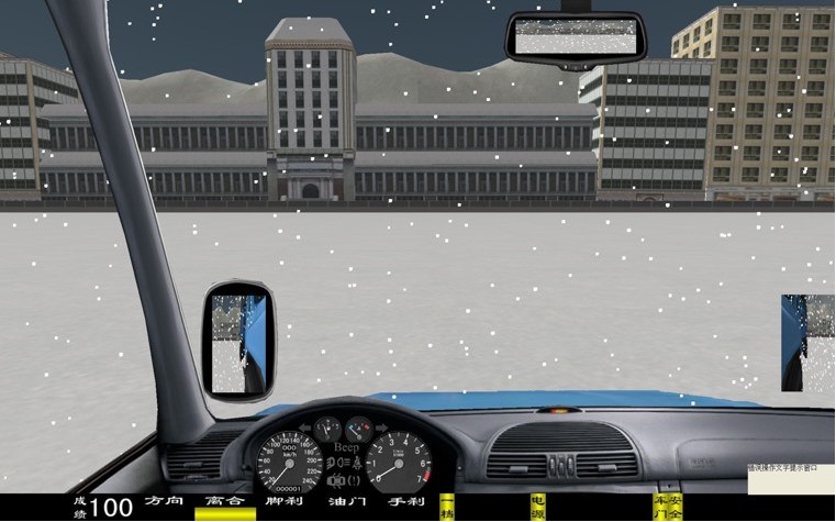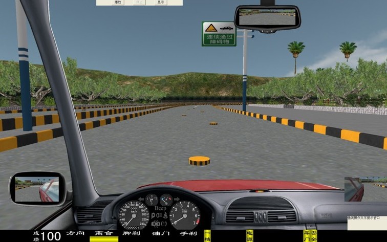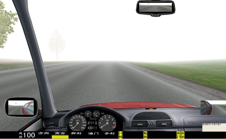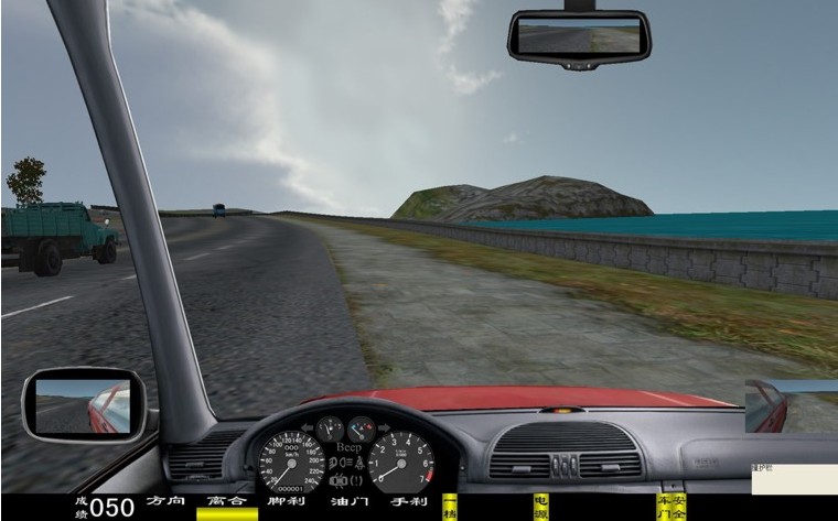 座艙包含了與真實(shí)車輛相同的操作部件,"五大"操縱機(jī)構(gòu):方向盤、離合器,腳剎,油門和手剎。真車變速器:倒檔、一檔、二檔、三檔、四檔、五檔和空擋(自動(dòng)檔只含前進(jìn)檔、倒車檔和駐車檔)。真車操作開關(guān):左轉(zhuǎn)向燈、右轉(zhuǎn)向燈、應(yīng)急燈、喇叭、點(diǎn)火開關(guān)、總電開關(guān)、安全帶、車門、雨刷、遠(yuǎn)光燈、近光燈、遠(yuǎn)近光交替。
