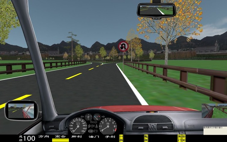 山區(qū)道路中,設(shè)置了陡坡、急彎等場景,訓(xùn)練學(xué)員在視線不好的情況下進(jìn)行駕駛的技能。山區(qū)道路中有60輛其它車輛。