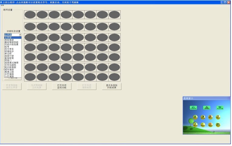 如下圖所示,監(jiān)控聯(lián)網(wǎng)中,主控臺(tái)可以連接56臺(tái)駕駛艙進(jìn)入。與互見聯(lián)網(wǎng)不同的是,監(jiān)控聯(lián)網(wǎng)的主控臺(tái)上只能監(jiān)控駕駛艙中的實(shí)時(shí)畫面,但是駕駛艙之間互相看不見。