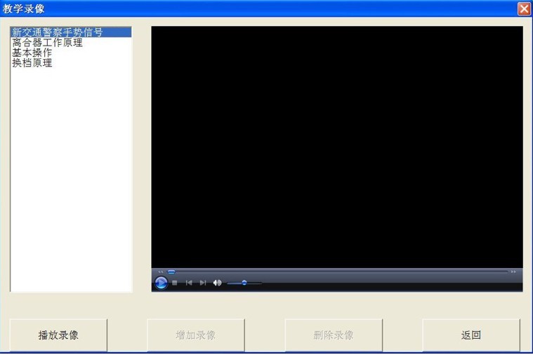 在主界面中點(diǎn)擊"教學(xué)錄像",則進(jìn)入如下界面中。這里可以播放已經(jīng)設(shè)置好的錄像。增加和刪除錄像需要在軟件設(shè)置中完成,這里不能進(jìn)行增加和刪除操作。