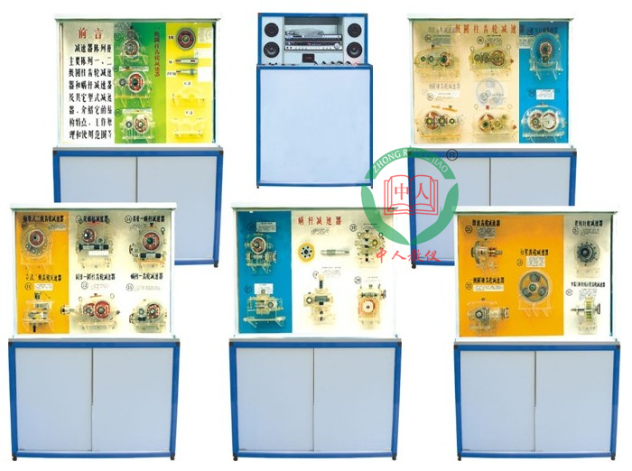 齒輪減速器是用來降低速度和增大轉(zhuǎn)矩的機械裝置,特別在裝卸材料、運輸、冶金、化學(xué)工業(yè)和造船工業(yè)中應(yīng)用廣泛。本公司聘請有關(guān)專家指導(dǎo)技術(shù)人員研究,推出了《減速器》陳列柜。它匯集一級、二級減速器、典型減速器與有關(guān)零部件等30多種陳列柜。具有演示形象逼真,運行可靠,制作工藝美觀,使用本陳列柜可提高教學(xué)效果,是一套現(xiàn)代化機械課程教學(xué)實驗室設(shè)備。
