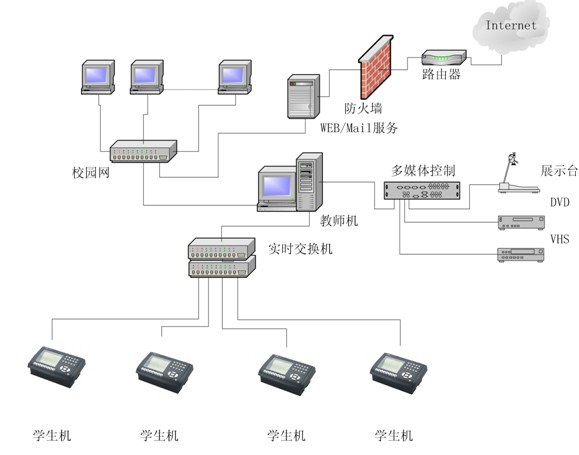 在進(jìn)行多媒體教學(xué)時經(jīng)常要使用VCD、錄像機(jī)等多媒體設(shè)備,為了控制這些設(shè)備,教師需要不斷更換遙控器或直接操作以控制不同的設(shè)備,操作極為不便。而多媒體集中控制器,實現(xiàn)多媒體設(shè)備集中控制,將教學(xué)控制界面和多媒體外部設(shè)備的控制全部集中在控制計算機(jī)上,教師可采用鼠標(biāo)控制如VCD、錄像機(jī)等外部設(shè)備,外圍設(shè)備全部采用紅外集中遙控方式,全面操作自動化。多媒體集中控制器為多媒體設(shè)備提供了最佳控制方案。它將多路信號的輸入輸出選擇、具體多媒體設(shè)備、環(huán)境設(shè)備的操作集中在計算機(jī)控制界面上,操作者通過直觀的控制臺操作,將煩瑣復(fù)雜的多媒體設(shè)備控制變得輕松自如(如VCD機(jī)、錄像機(jī)播放、停止、快進(jìn)……)。