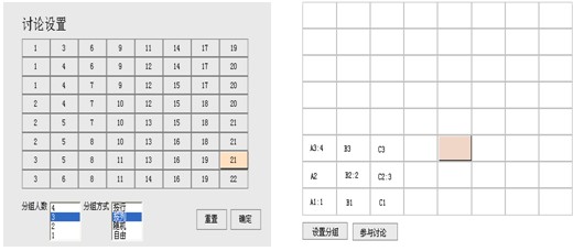 (5) 分組討論:任意分組、并記錄分組情況進(jìn)行聲音討論訓(xùn)練教師可任意參加一級討論進(jìn)行交流。保證了對話交互實時性,提高學(xué)生的聽、說、應(yīng)變等綜合能力的。分組方式有:指定分組、固定分組、隨機(jī)分組。
