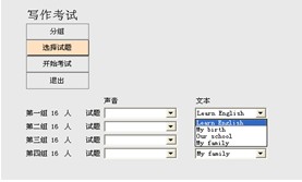 三、選定試題后點擊“確定”,返回寫作考試主界面。每組相對應(yīng)的試題標(biāo)題可點擊下拉條進(jìn)行調(diào)整,如下圖: