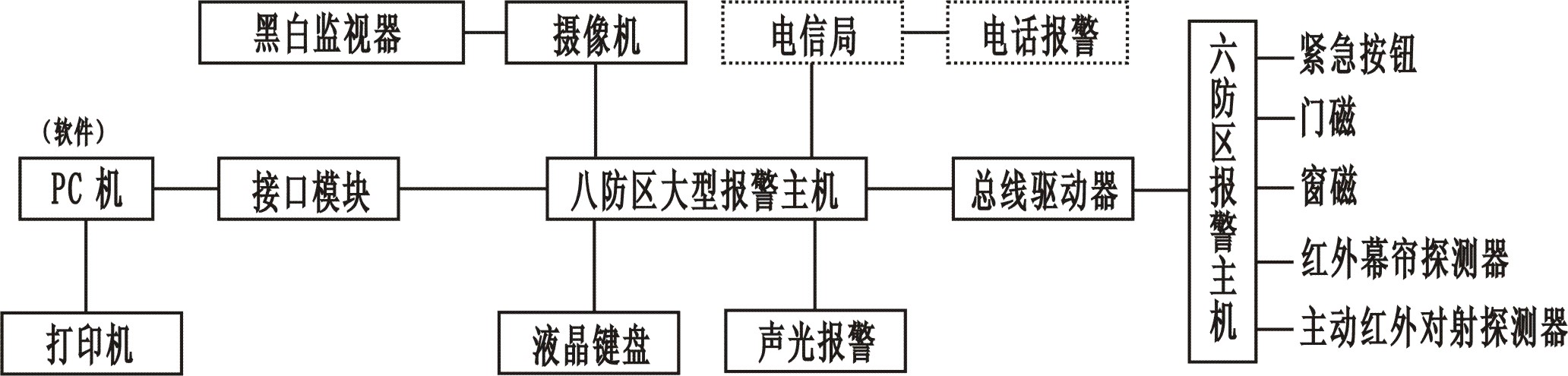 ZR-16防盜報(bào)警系統(tǒng)實(shí)訓(xùn)裝置系統(tǒng)能進(jìn)行各種模擬防盜報(bào)警系統(tǒng)聯(lián)動(dòng)操作演示、系統(tǒng)的設(shè)置、編程、線路設(shè)計(jì)、線路及設(shè)置故障的判斷及排除等實(shí)訓(xùn)和實(shí)訓(xùn)內(nèi)容。二、結(jié)構(gòu)框圖