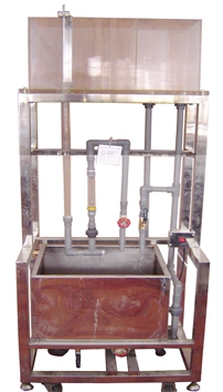 下水箱:不銹鋼材質(zhì),配水源接入口及排空底閥。 循環(huán)水泵:低噪增壓泵: 上水箱:高強度有機玻璃材質(zhì),可視性溢流及穩(wěn)液位設(shè)計。 實驗管段:玻璃材質(zhì),Φ32,觀察管段長80cm。 示蹤設(shè)備:示蹤劑貯盒,細孔噴嘴,可調(diào)式液體注射器。 | |||